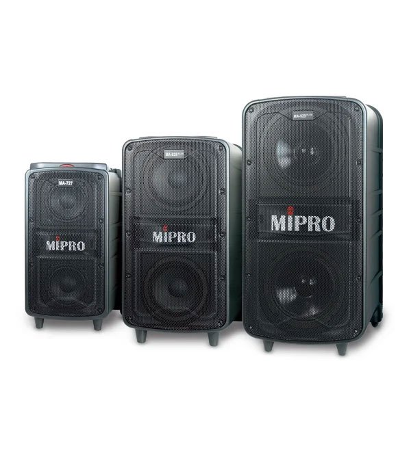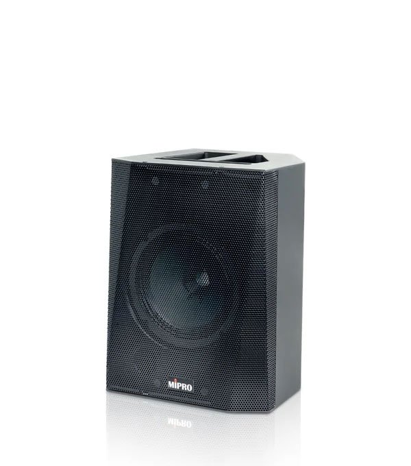 中型可攜式擴音機,具同軸喇叭與 DSP 混控,最多可搭配四組無線麥克風,適用教學、會議與活動應用。