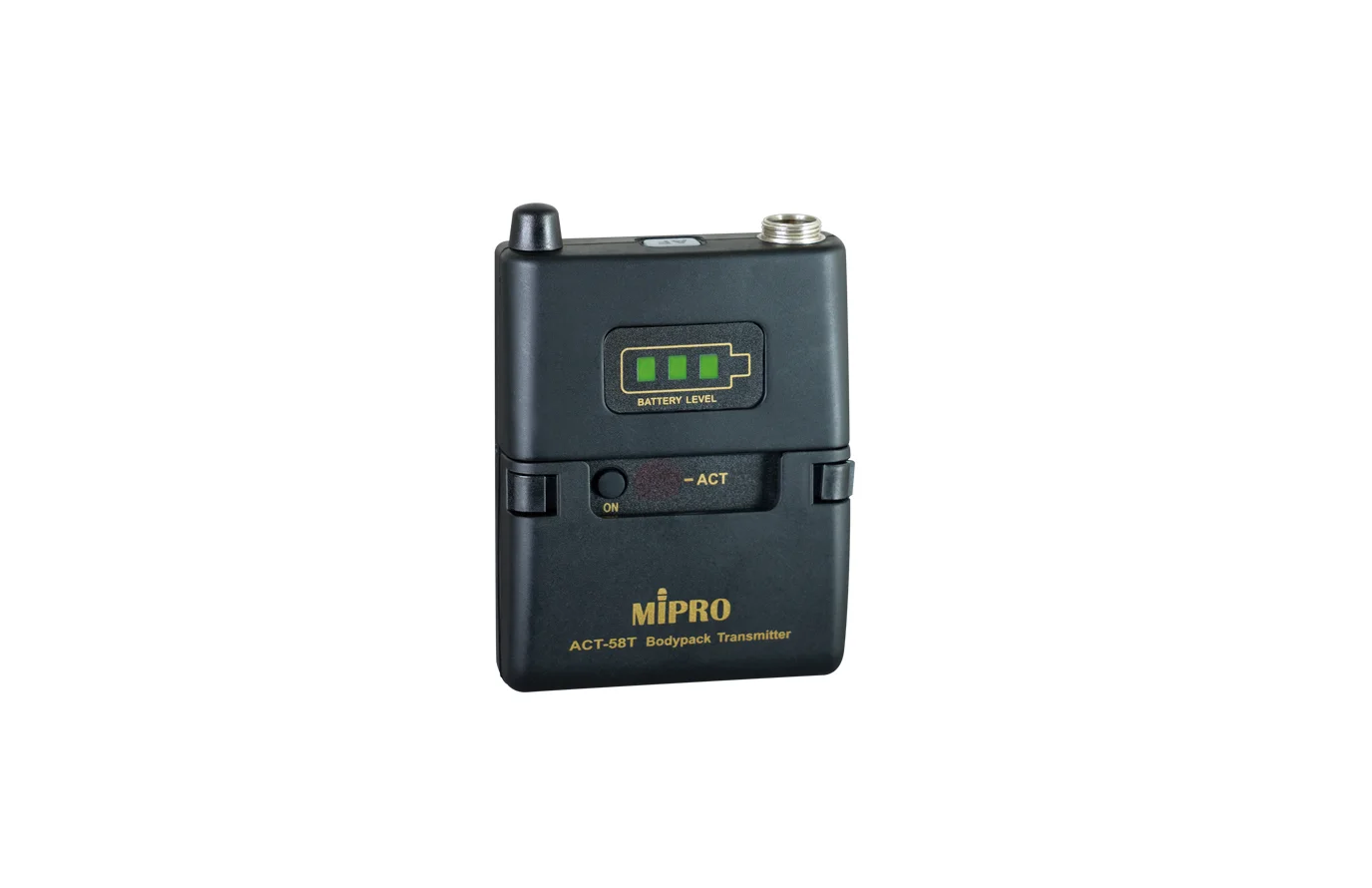 - 輸入端採 MIPRO 4-Pin Mini XLR,可搭配 MIPRO 全系列領夾或頭戴麥克風及各類樂器收音模組
