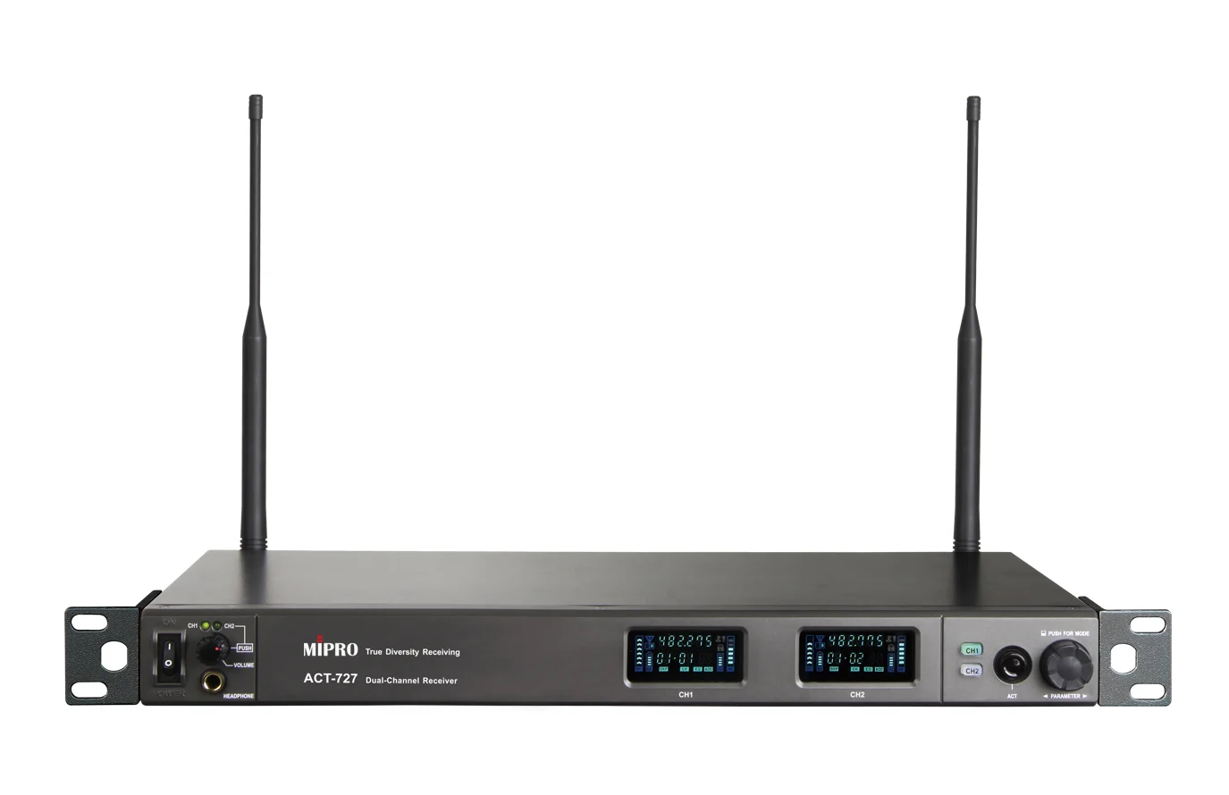 - 搭載 MIPRO 獨家設計的 72 MHz 寬頻接收電路,提升可用頻道數並有效降低互調干擾。