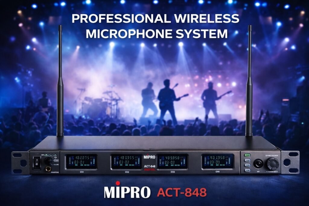 ACT-848 為四頻道數位接收機,採用 72 MHz 寬頻接收電路、數位選訊接收與 256-bit 加密功能。具穩定 RF 表現與清晰音質,並整合 Dante、AES/EBU、Wordclock 與 MWC 軟體,適合多頻道專業系統。
