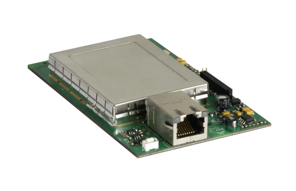 Dante 網路音訊模組,可將 ACT-800、ACT-700 與 ACT-500 系列接收機音訊轉換為 Dante 傳輸,實現低延遲、高品質的數位音訊網路整合。
