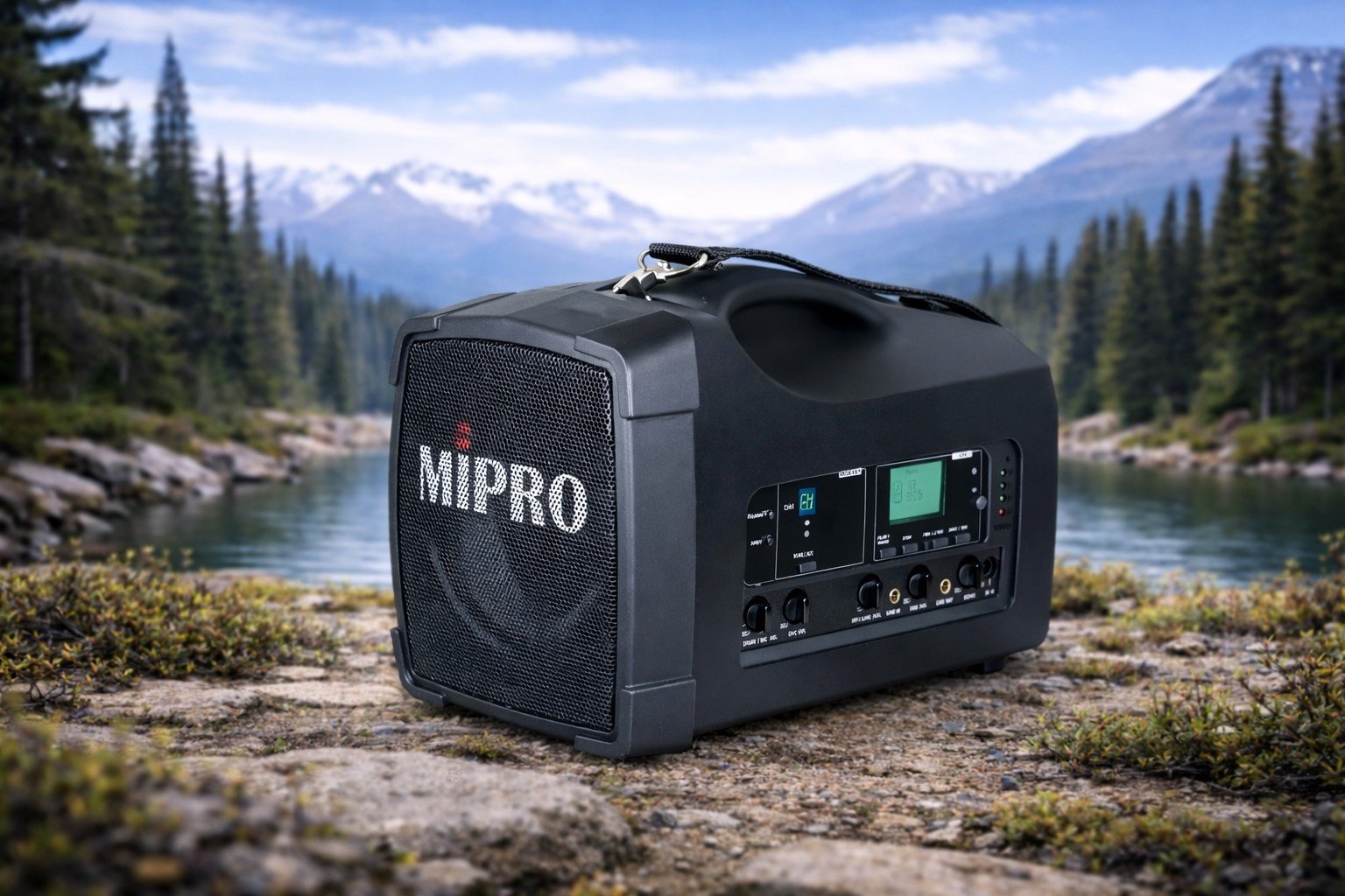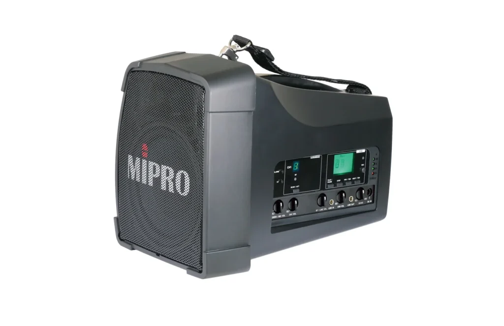 - 高效率 D 類放大器,驅動雙音路喇叭,聲音清晰,適合戶外導覽、集會與行動喊話。