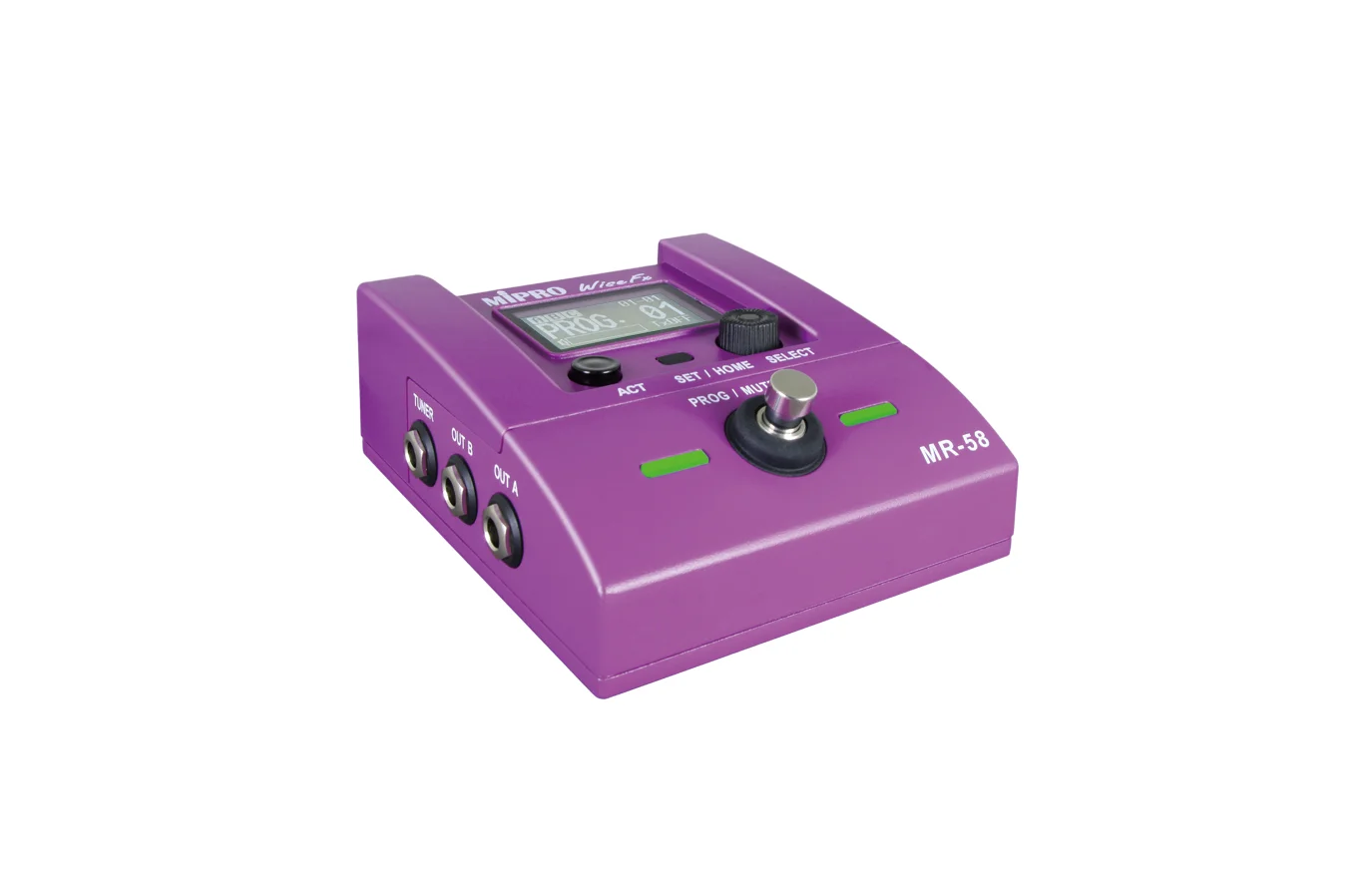 MR-58 為踏板式 5 GHz 數位樂器無線接收機,可與相同頻段的發射器搭配使用。專為電吉他、電貝斯與鍵盤等舞台樂手設計,便於整合於效果器盤並提供穩定低延遲的無線監聽。